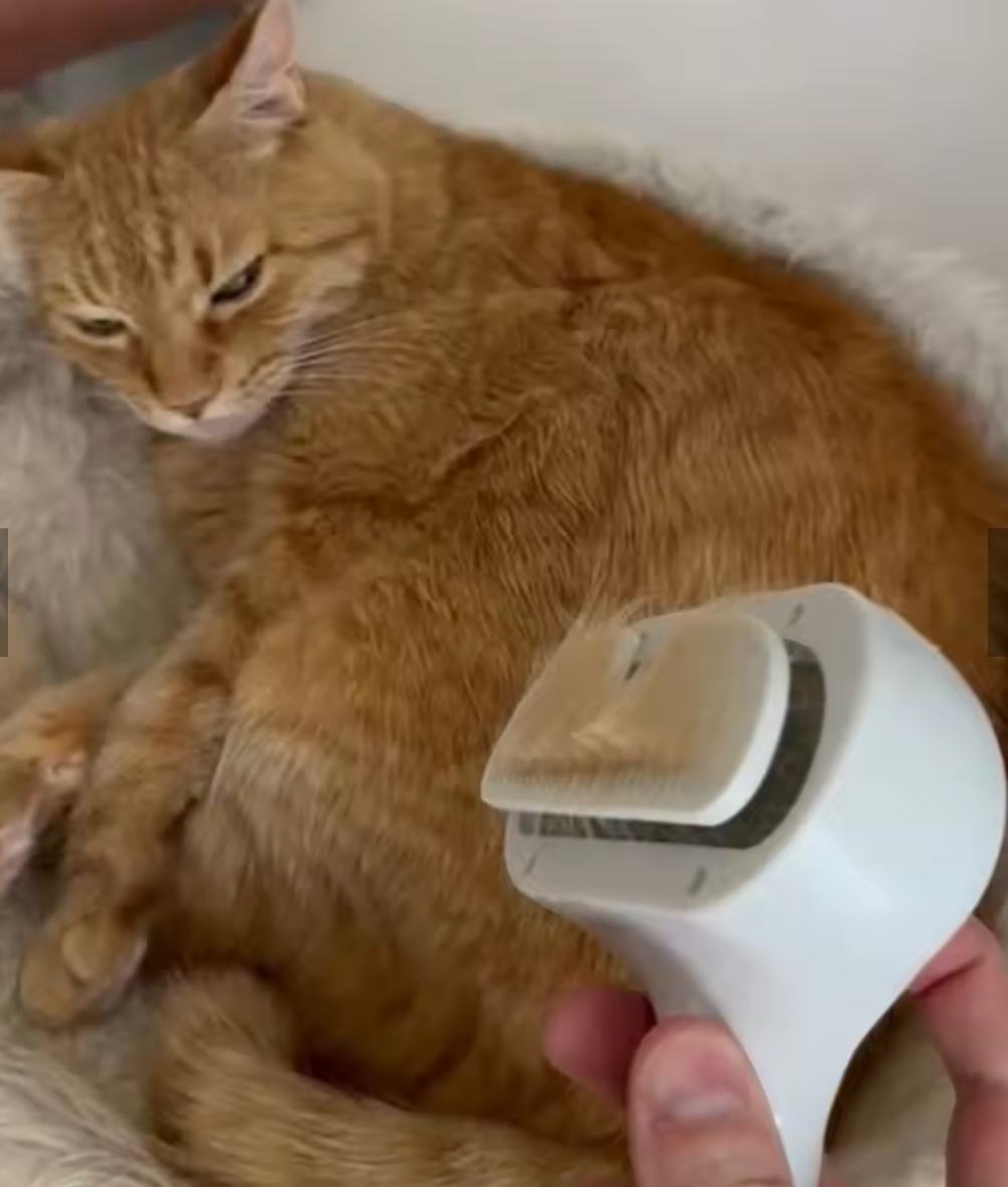 "Facile à utiliser. Pas d’indicateur de batterie. Facile à remplir d’eau. Fait un bruit pendant l’utilisation, mais pas trop fort — le chat n’est pas dérangé par le bruit. Facile à enlever les poils de la brosse."